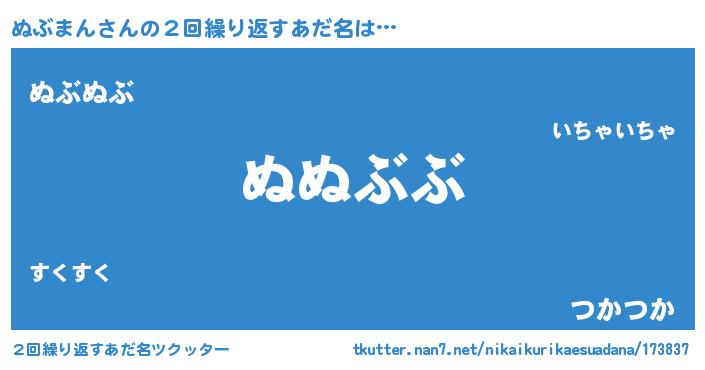 | ポケモン風あだ名 | 『ヌブマダネ』『ヌブチュウ』 |