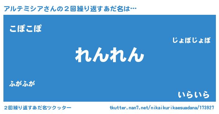 | ヘコむあだ名 | 『アルテミシア(笑)』『アル太郎』 |
