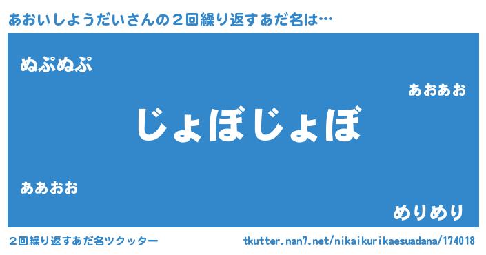 | 意味不明あだ名 | 『住所不定無職あおいしようだい(4歳)』 |