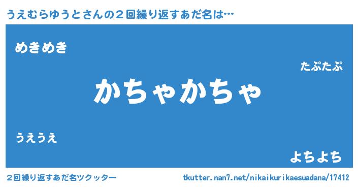 | 可愛いあだ名 | 『うえむらゆうとママ』『うえうちぇる』 |