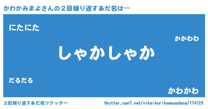 | 料理風あだ名 | 『かわかみまよのカルパッチョ風』 |