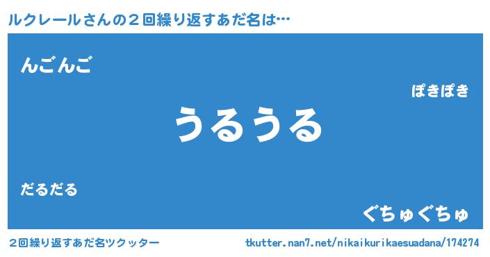 | 自動車の名前っぽいあだ名 | 『ルルトクパン』『ルールスクイス』 |