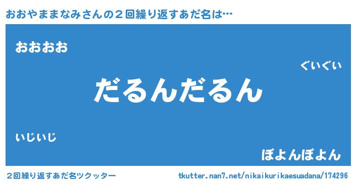 | 欧米人風あだ名 | 『おおやままなみ・ステッグマイヤー』 |