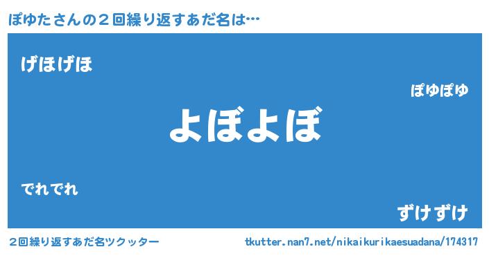 | ヘコむあだ名 | 『ぽゆた(爆)』『ぽゆもー』『ぽゆを』 |