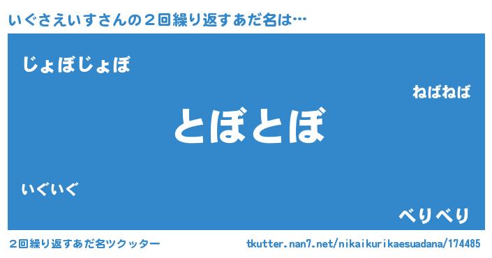 | 意味不明あだ名 | 『住所不定無職いぐさえいす(50歳)』 |