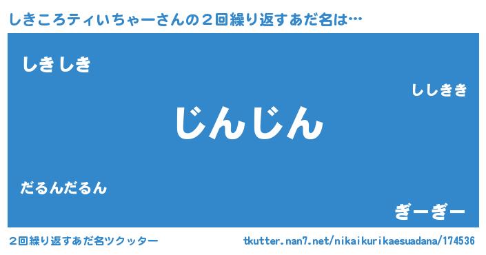 | 男性向けラノベタイトル風あだ名 | 『この素晴らしい世界にしきころティいちゃーを!』 |