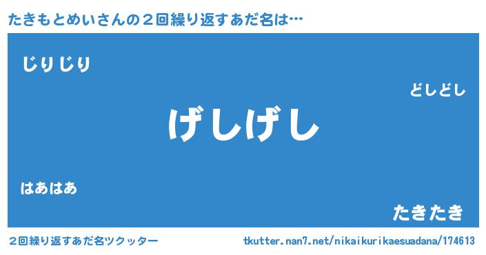 | ヘコむあだ名 | 『たきもとめい(笑)』『たきっふぃ~』 |