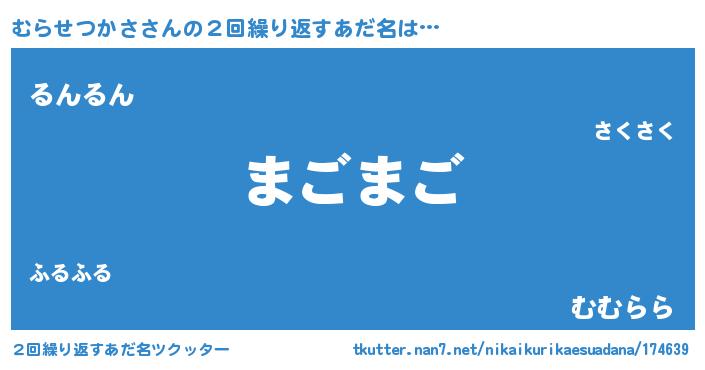 | 意味不明あだ名 | 『自称むらせつかさ』 |