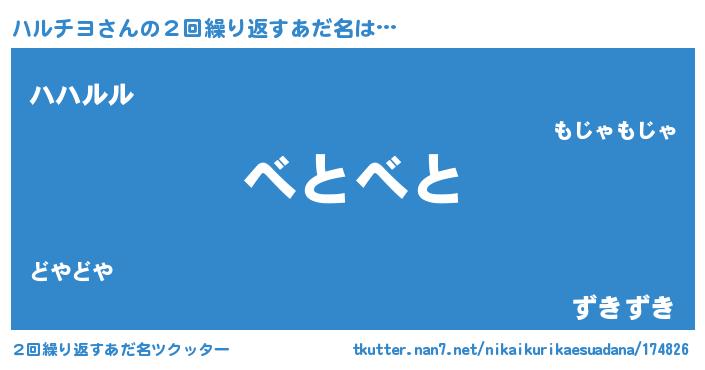 | 男性向けラノベタイトル風あだ名 | 『ノーゲーム・ノーハルチヨ』 |