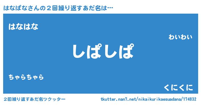 | 意味不明あだ名 | 『住所不定無職はなばな(13歳)』 |