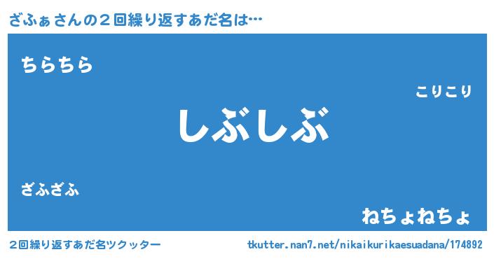 | 意味不明あだ名 | 『住所不定無職ざふぁ(65歳)』 |
