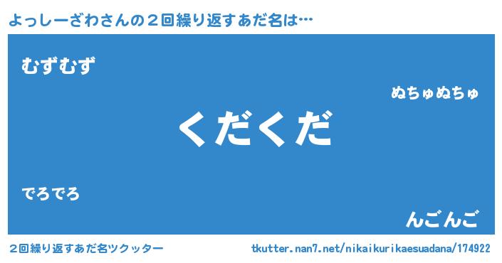 | 意味不明あだ名 | 『永久保存よっしーざわ』 |