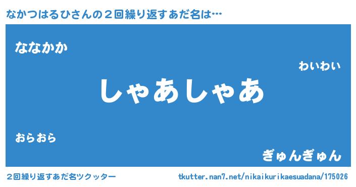 | 意味不明あだ名 | 『住所不定無職なかつはるひ(95歳)』 |