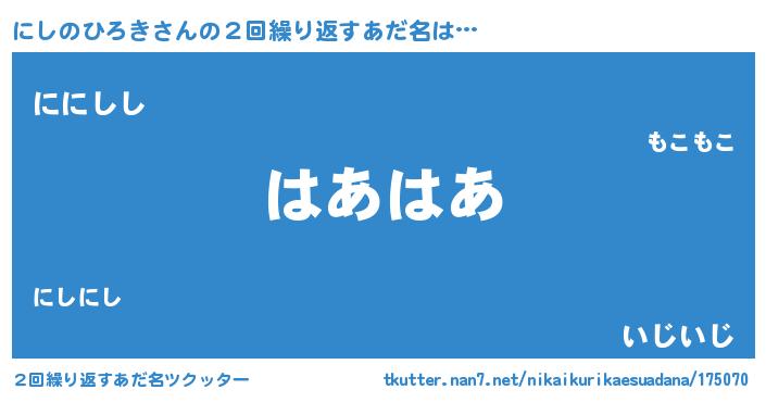 | ピコ太郎風あだ名 | 『ニニ太郎』『ピニ八郎』『ニシ二郎』 |