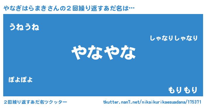 | ポケモン風あだ名 | 『ヤナチュウ』『ヒヤナギハラマキ』 |
