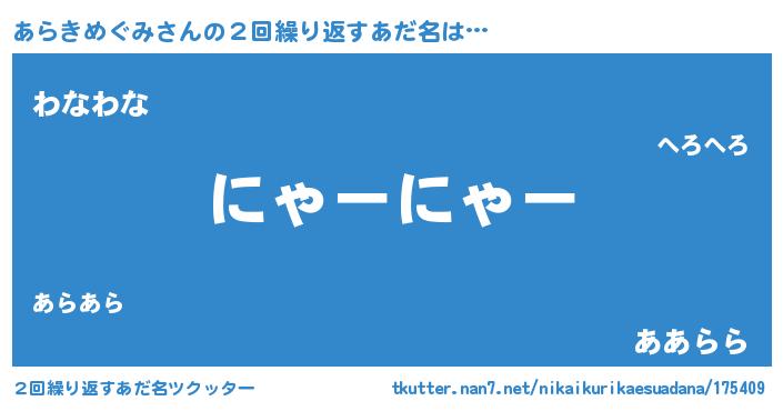 | 男性向けラノベタイトル風あだ名 | 『あらきめぐみの嫁は女の子じゃないと思った?』 |