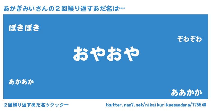 | 欧米人風あだ名 | 『ウサインあかぎみい』 |