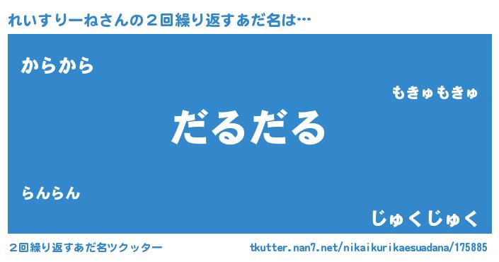 | 意味不明あだ名 | 『永久保存れいすりーね』 |