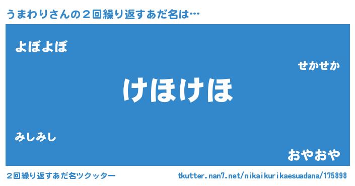 | 意味不明あだ名 | 『永久保存うまわり』『自称うまわり』 |