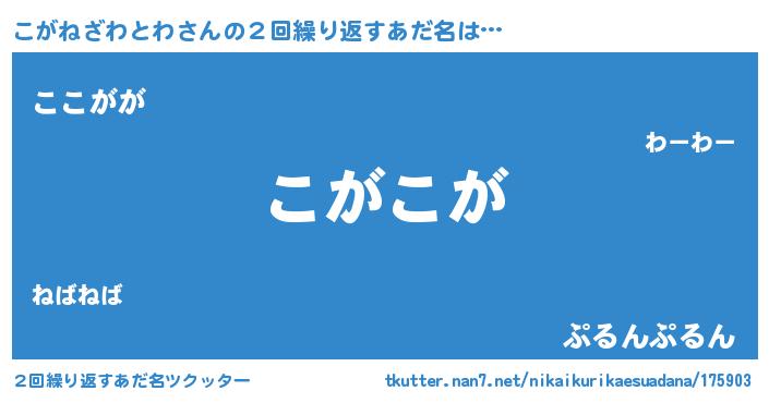 | 男性向けラノベタイトル風あだ名 | 『こがねざわとわの憂鬱』 |