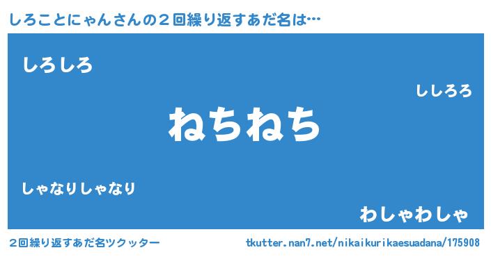 | 欧米人風あだ名 | 『ウサインしろことにゃん』 |