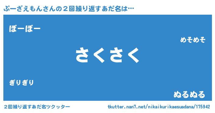 | ポケモン風あだ名 | 『プーーイ』『プックウザ』 |