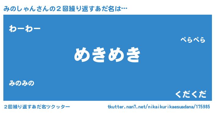 | 意味不明あだ名 | 『自称みのしゃん』『永久保存みのしゃん』 |