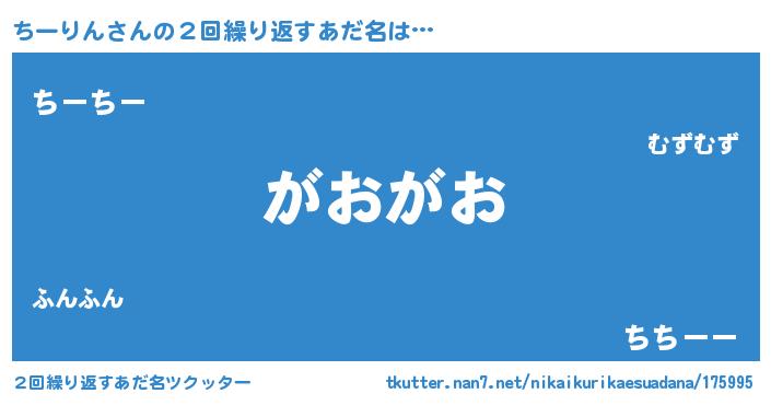 | 意味不明あだ名 | 『永久保存ちーりん』『ペロリンちーりん』 |