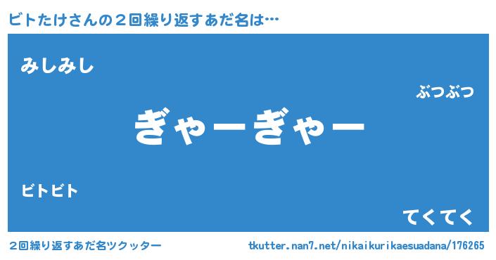 | ヘコむあだ名 | 『ビトたけ(震え声)』『ビトふぇ~』 |
