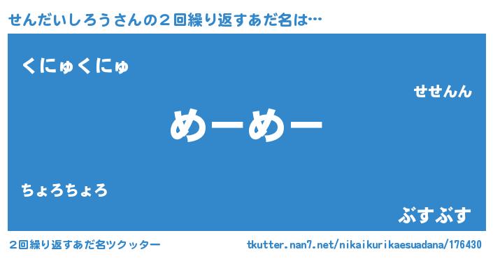 | 意味不明あだ名 | 『自称せんだいしろう』 |