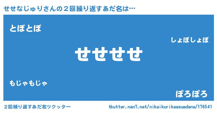 | 男性向けラノベタイトル風あだ名 | 『やはりせせなじゅりの青春ラブコメはまちがっている 』 |