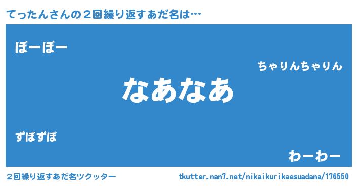 | 意味不明あだ名 | 『とにかく怪しいてったん』 |