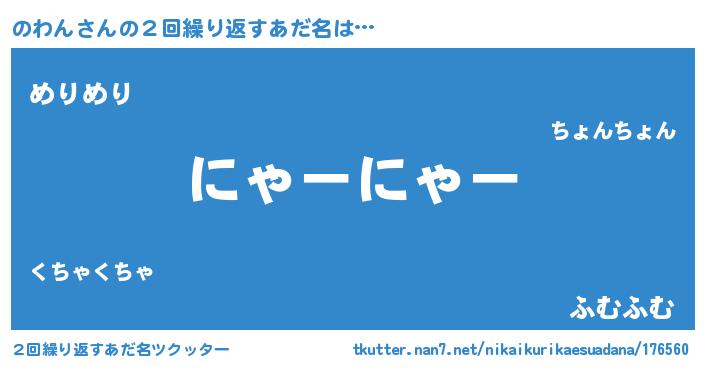 | 男性向けラノベタイトル風あだ名 | 『のわんに滅ぼされるだけの簡単なお仕事です』 |
