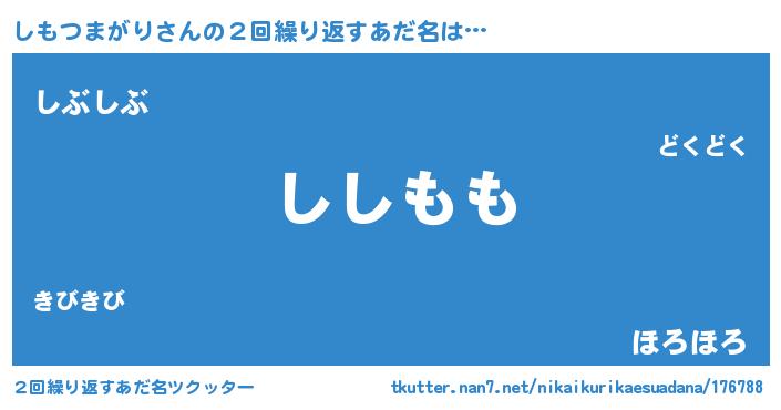 | 意味不明あだ名 | 『しもつまがりフォーエバー』 |