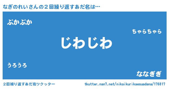 | 意味不明あだ名 | 『住所不定無職なぎのれい(81歳)』 |