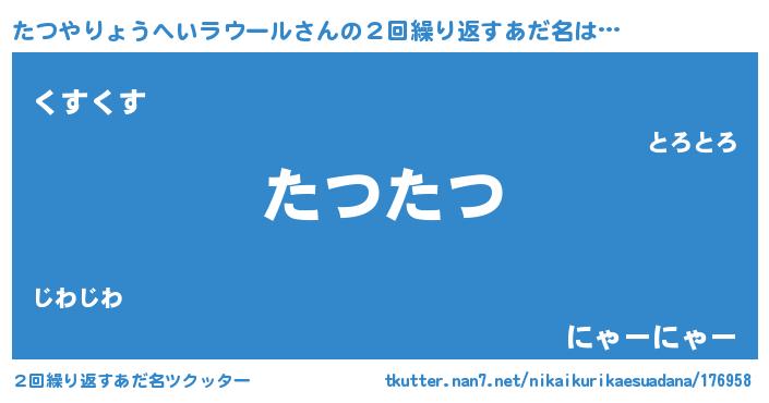 | 男性向けラノベタイトル風あだ名 | 『たつやりょうへいラウールの憂鬱』 |