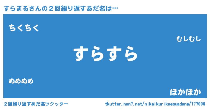 | 欧米人風あだ名 | 『アンジェラ・すらまる』 |