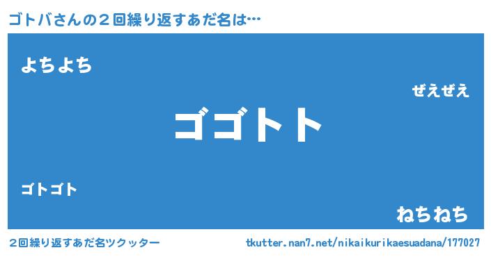 | 欧米人風あだ名 | 『ゴトバクリステル』『トリンドルゴトバ』 |