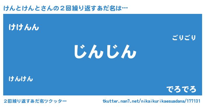 | 男性向けラノベタイトル風あだ名 | 『この素晴らしい世界にけんとけんとを!』 |