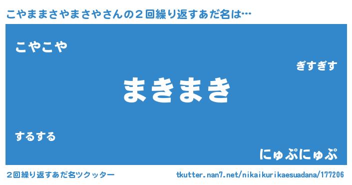 | 女子向けラノベタイトル風あだ名 | 『こやままさやまさやなんてお断りですっ。』 |