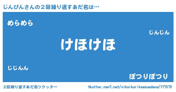| 意味不明あだ名 | 『永久保存じんぴん』『自称じんぴん』 |