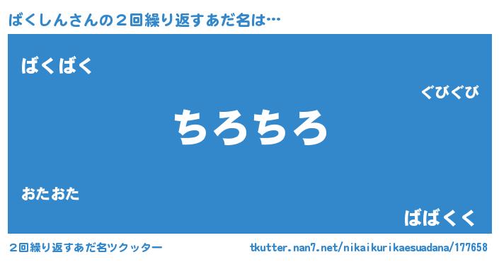 | 意味不明あだ名 | 『ペロリンばくしん』『永久保存ばくしん』 |