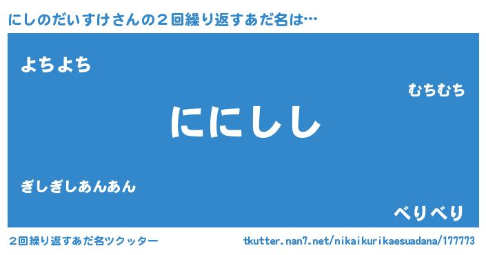 | 意味不明あだ名 | 『にしのだいすけフォーエバー』 |