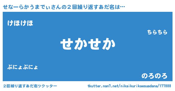 | ヘコむあだ名 | 『せなーらかうまでぃ(笑)』『せなっちょ』 |