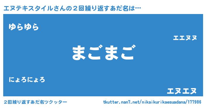 | 意味不明あだ名 | 『自称エヌテキスタイル』 |