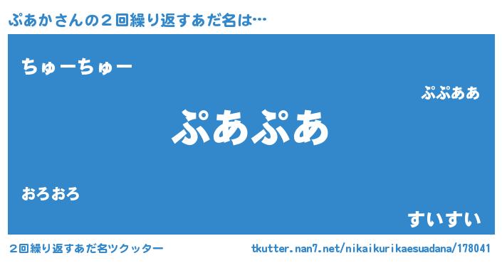 | 男性向けラノベタイトル風あだ名 | 『ぷあかの憂鬱』『はたらくぷあかさま!』 |