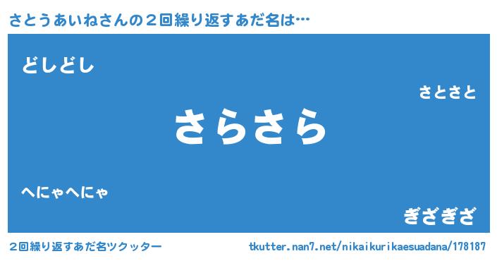 | ヘコむあだ名 | 『さとうあいね(笑)』『さとにー』 |
