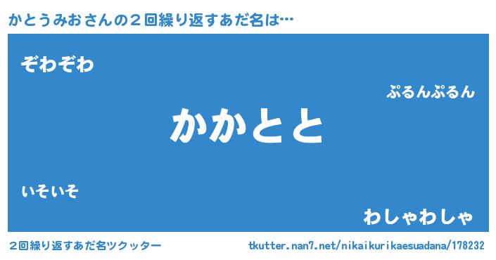 | 欧米人風あだ名 | 『かとうみおクリステル』 |