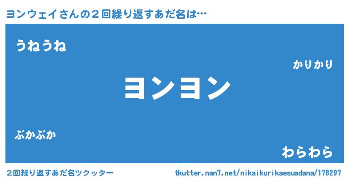 | 男性向けラノベタイトル風あだ名 | 『ヨンウェイの憂鬱』 |