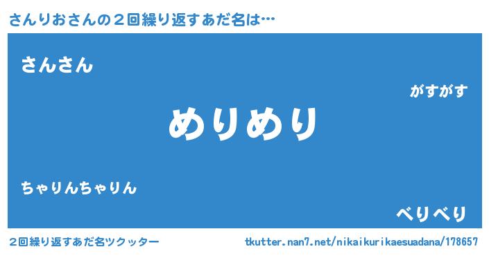 | 男性向けラノベタイトル風あだ名 | 『Re:さんりおから始める異世界生活』 |